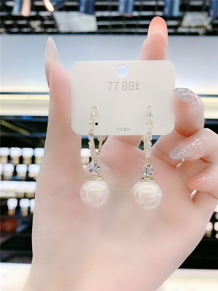 2021 New Korean style fashionable elegant long earrings for women South Korea simple autumn and winter red Agate Pearl earrings earrings