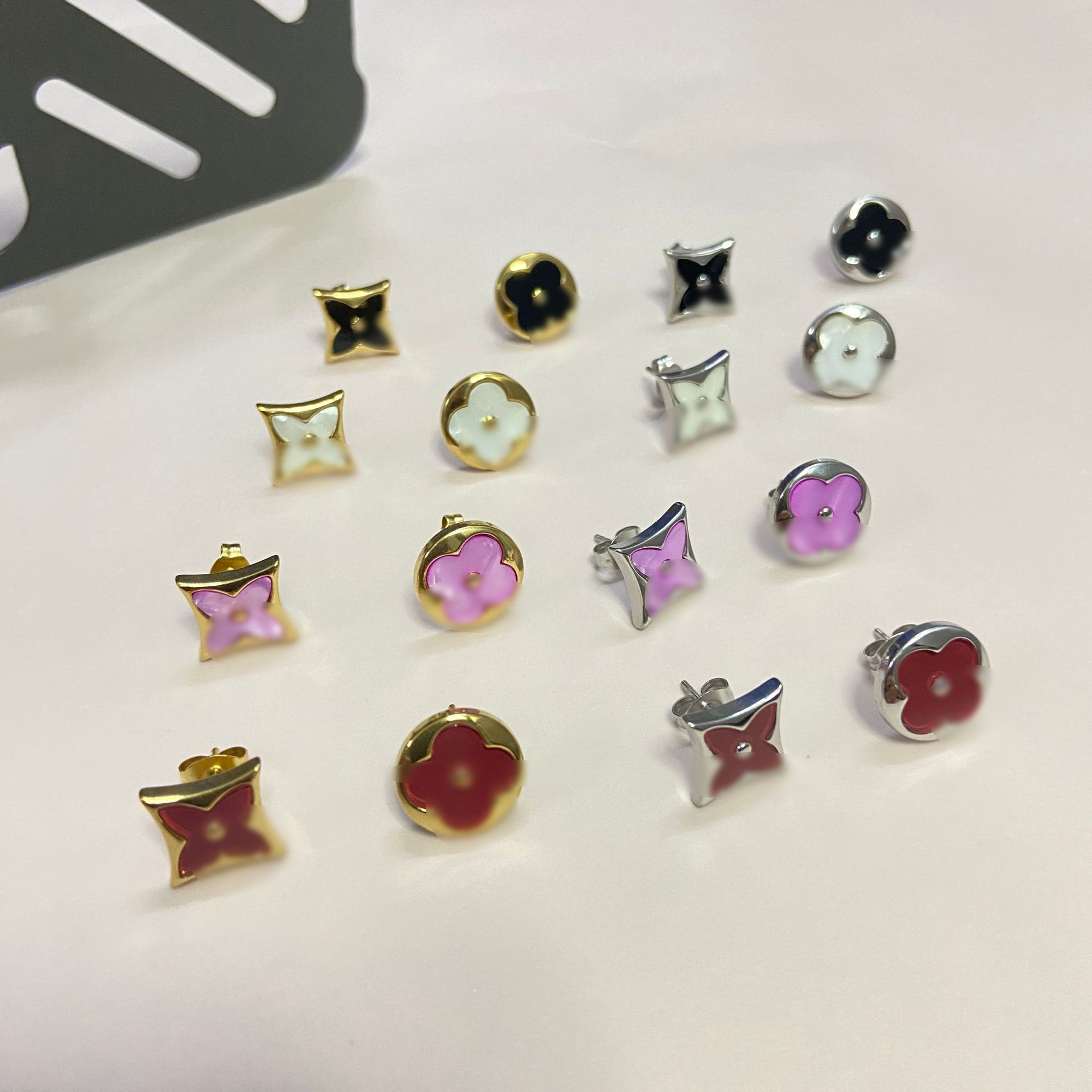 High-End Four-Leaf Clover Round Flower Pointed Earrings Mother-Of-Pearl Rhombus Studs Versatile Trendy New Style 2025 Hot Item