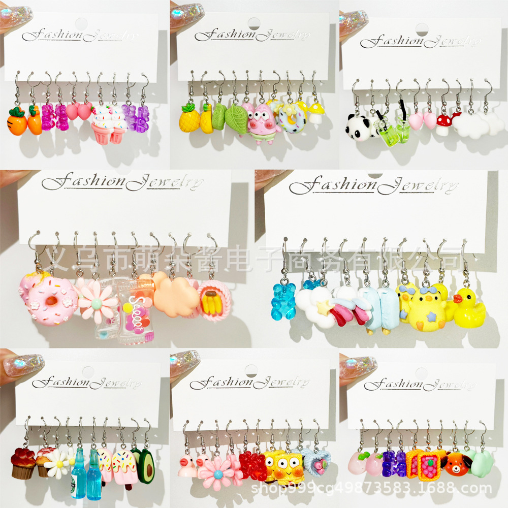 Cross-border Best Selling Acrylic Bear Fresh Cute Duck Funny Food and Play Earrings suit
