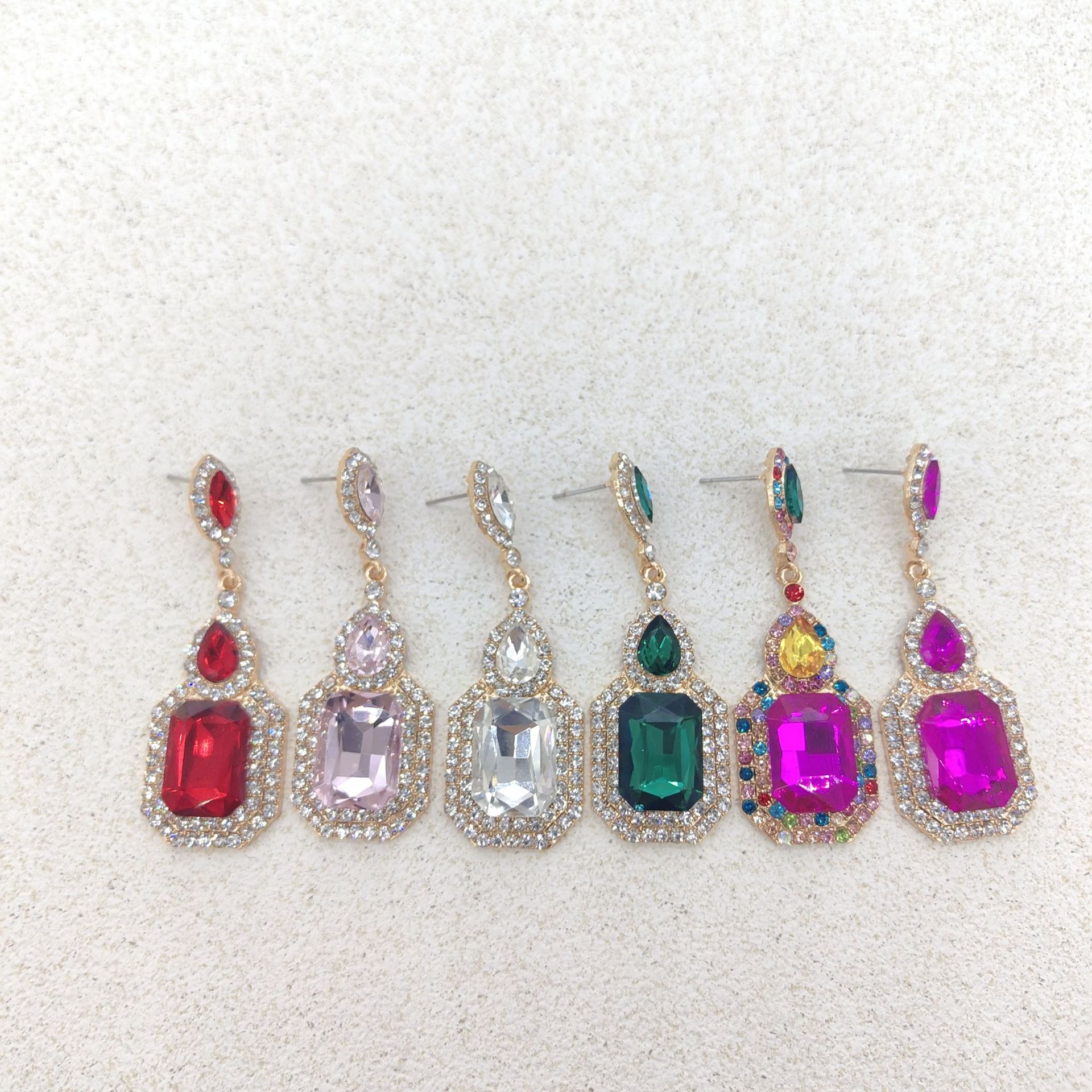 European and American Retro Accessible Luxury Alloy Full of Diamonds Long Square Water Drop Women's Earrings Party Banquet Earrings Jewelry