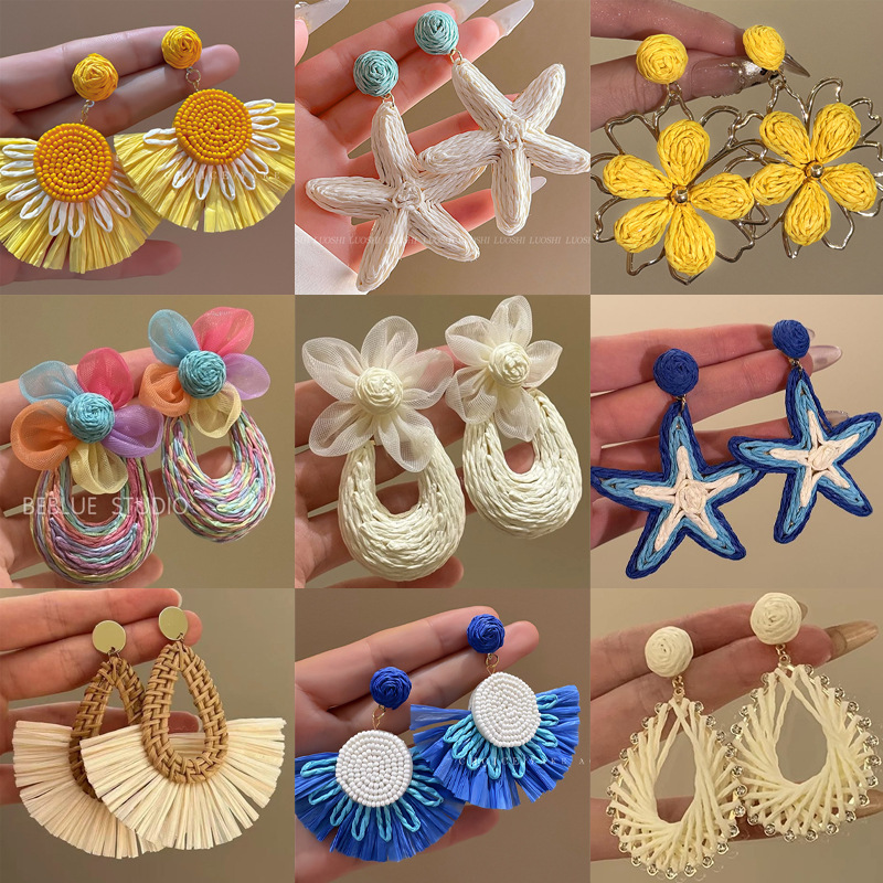 Vacation Style Straw Sun Flower Earrings Spring and Summer Earrings Seaside Photo Exaggerated Unique Dopamine Earrings Spring