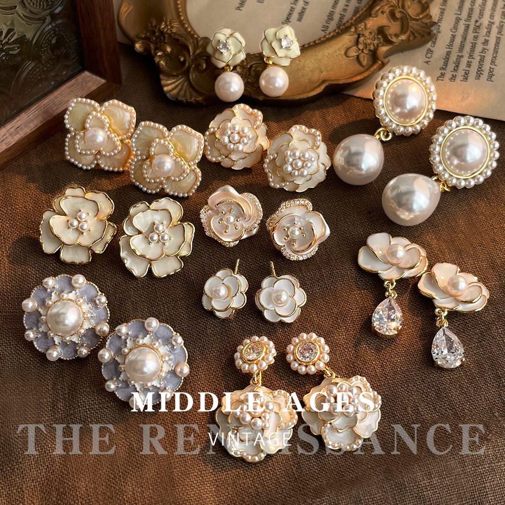 Vintage Light Medieval French Retro Pearl Flower Collection Earrings Enamel Oil Dripping Palace Style Earrings Earrings